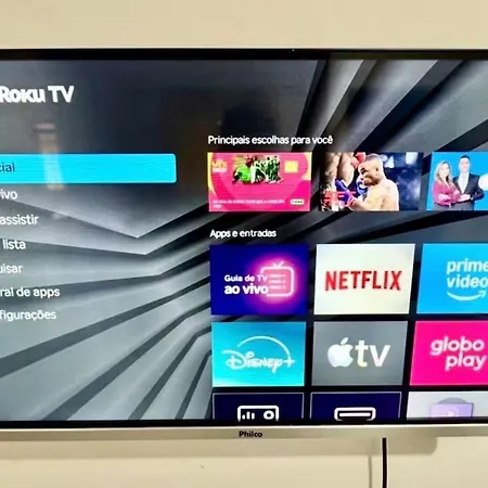 The 60 m² apartment lies 2.8 km from the Pedrinhas Balneary. Guests can easily reach the Old Brazilian Eastern Railway Station, which is merely a 7-minute stroll away.